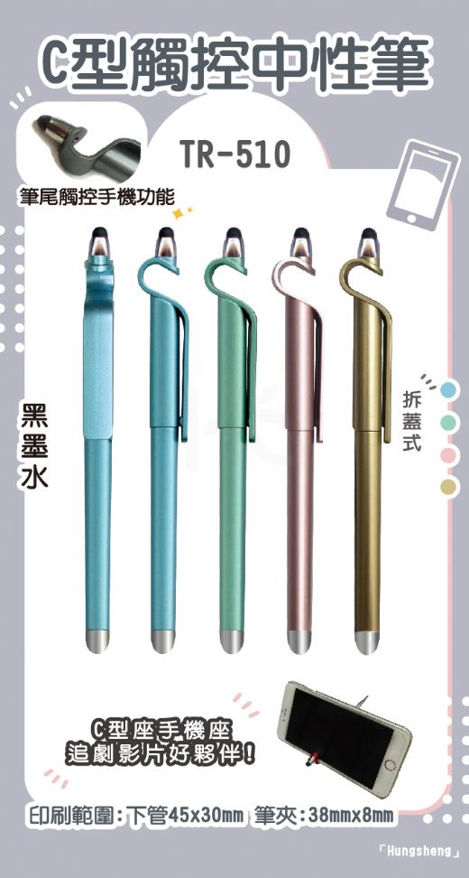 手機座觸控中性筆,可使用在平板電腦、手機、電容式觸控螢幕,也可以當成一般中性筆書寫,筆夾可印刷QRCode讓你客戶馬上進入官網! 可印刷公司LOGO及文宣,簡單的廣告促銷利器! 書寫流利的廣告筆,為您帶來無限商機!